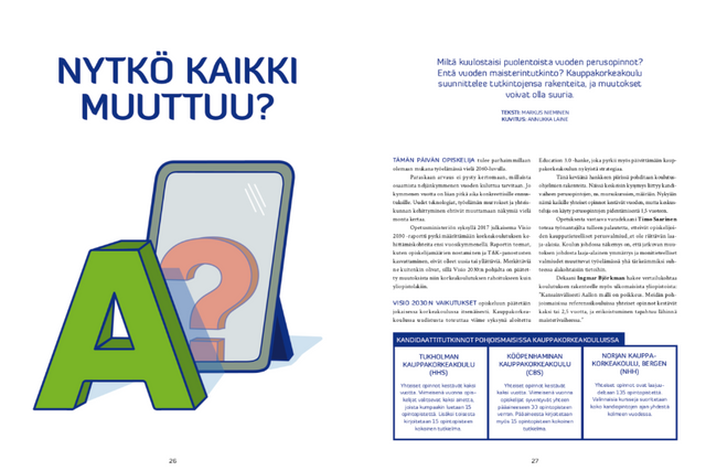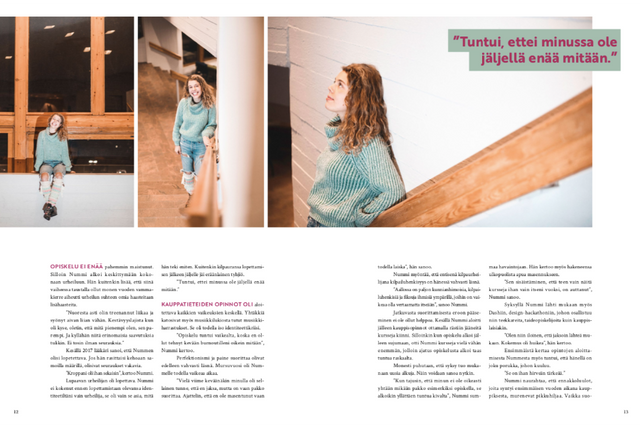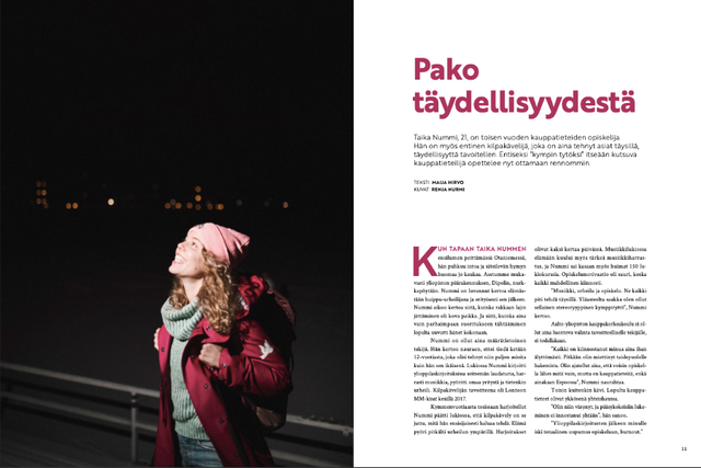 Kylteri is a quarterly magazine for and by Aalto university business students, covering a wide variey of topics important to students. The makers of the magazine change yearly, so the visual look of Kylteri reflects that - it’s constantly evolving. The magazine looks playful and experimental, without sacrificing the easiness or reading.